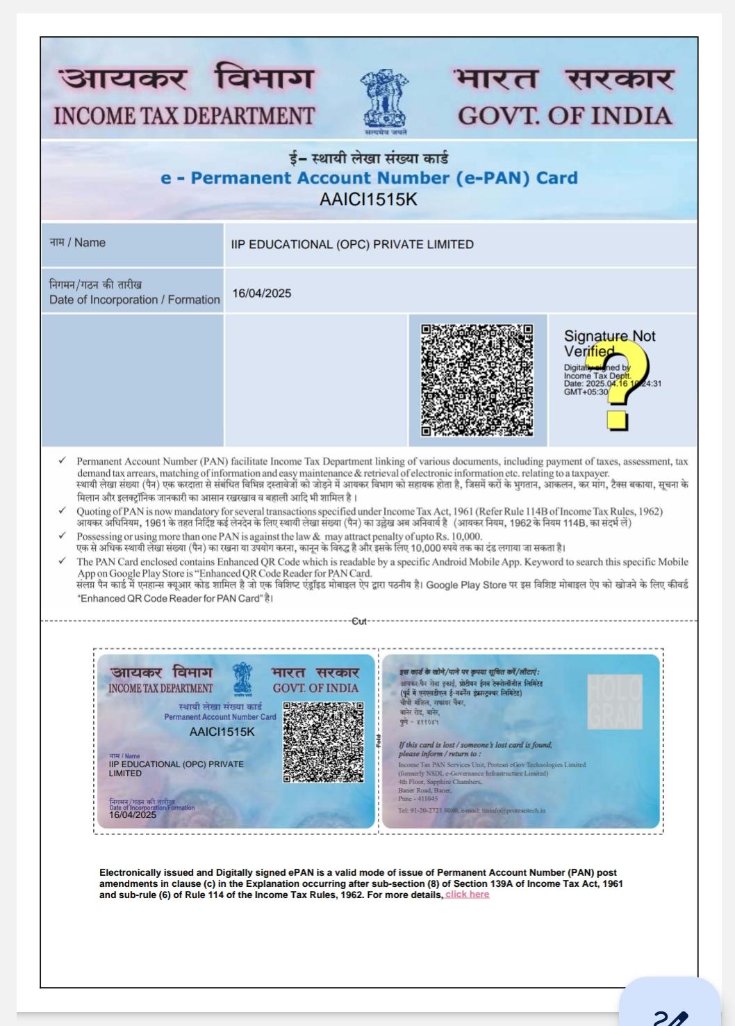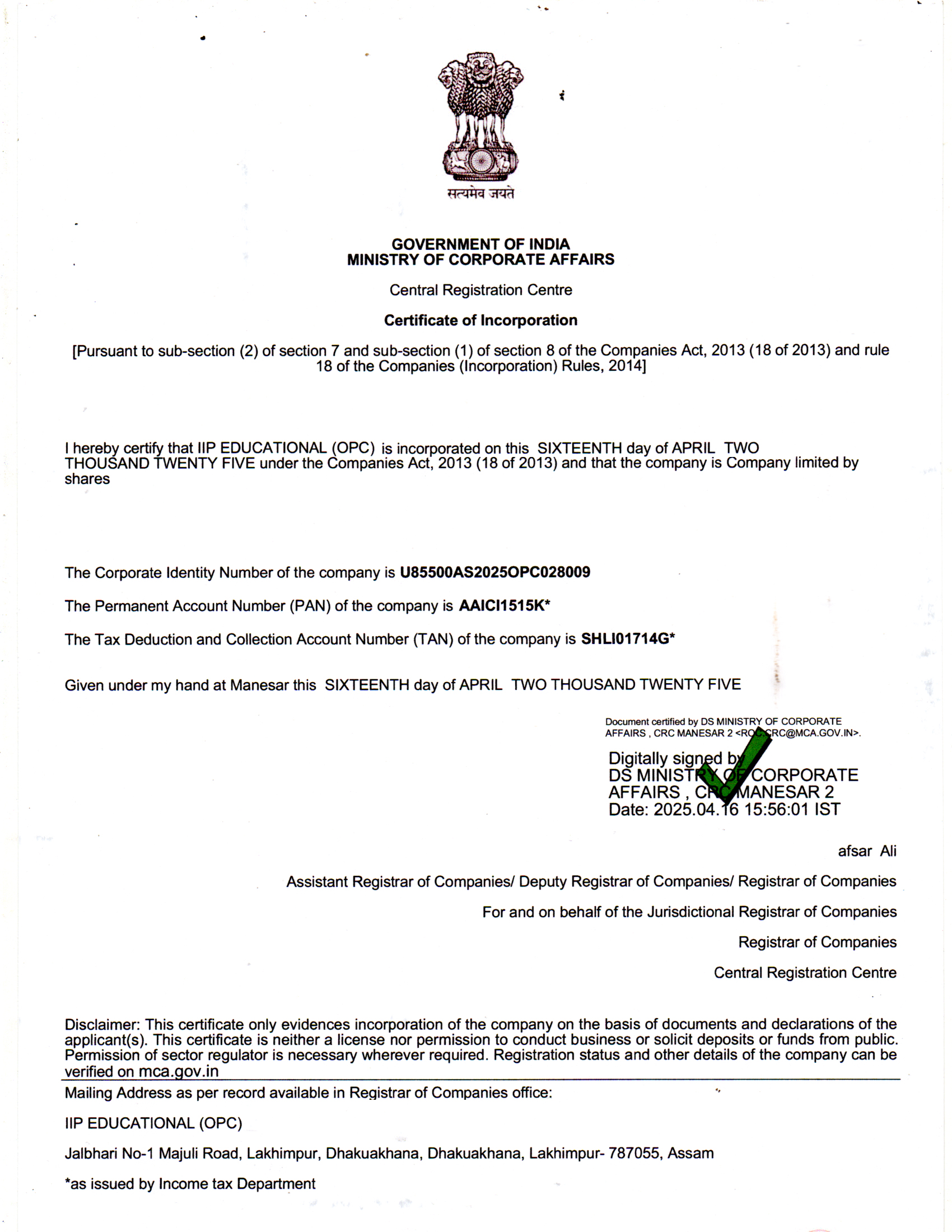 IIP Govt. Aproval Certificate